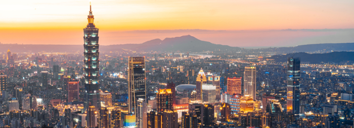 Skyline van Taipei bij schemering