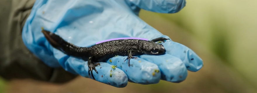 Slechts de helft van de 100 tot 200 eitjes die een kamsalamander jaarlijks legt komt uit. De genetische mutatie, die daarvoor verantwoordelijk is, wordt bestudeerd door bioloog Manon de Visser. In een video van Universiteit van Nederland legt ze uit waarom haar onderzoek ook voor mensen belangrijk is.