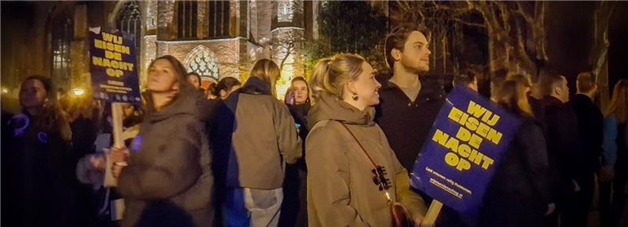Honderden demonstranten lopen mee in Leidse protestmars Wij Eisen De Nacht Op