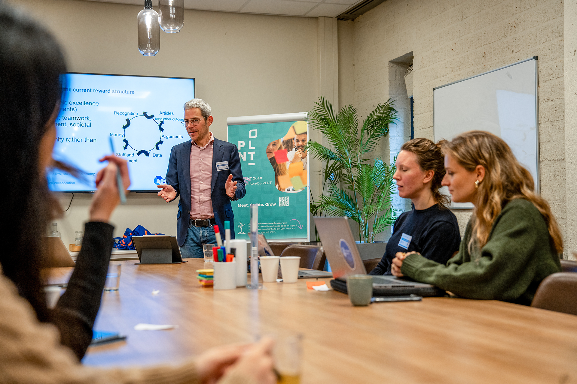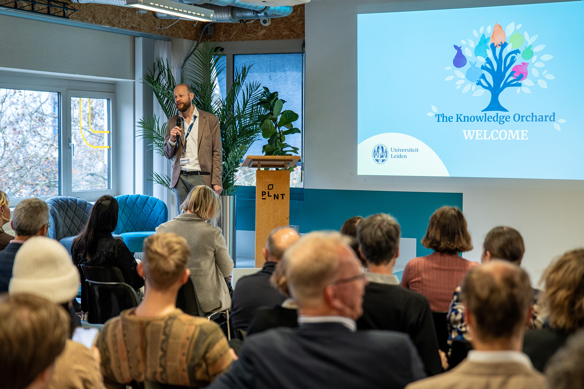 Inspiratie, kennis, ondersteuning en nieuwe contacten. Dat waren de zaken die deelnemers tijdens De Kennisboomgaard konden ophalen op vrijdag 28 november in PLNT. ’s Ochtends kwamen meer dan honderd onderzoekers, onderwijzers, ondersteuners en bestuurders van de Universiteit Leiden bij elkaar. Zij konden kiezen uit veertien verschillende sessies om hen een stap verder te brengen in hun interdisciplinaire onderzoek of onderwijs.