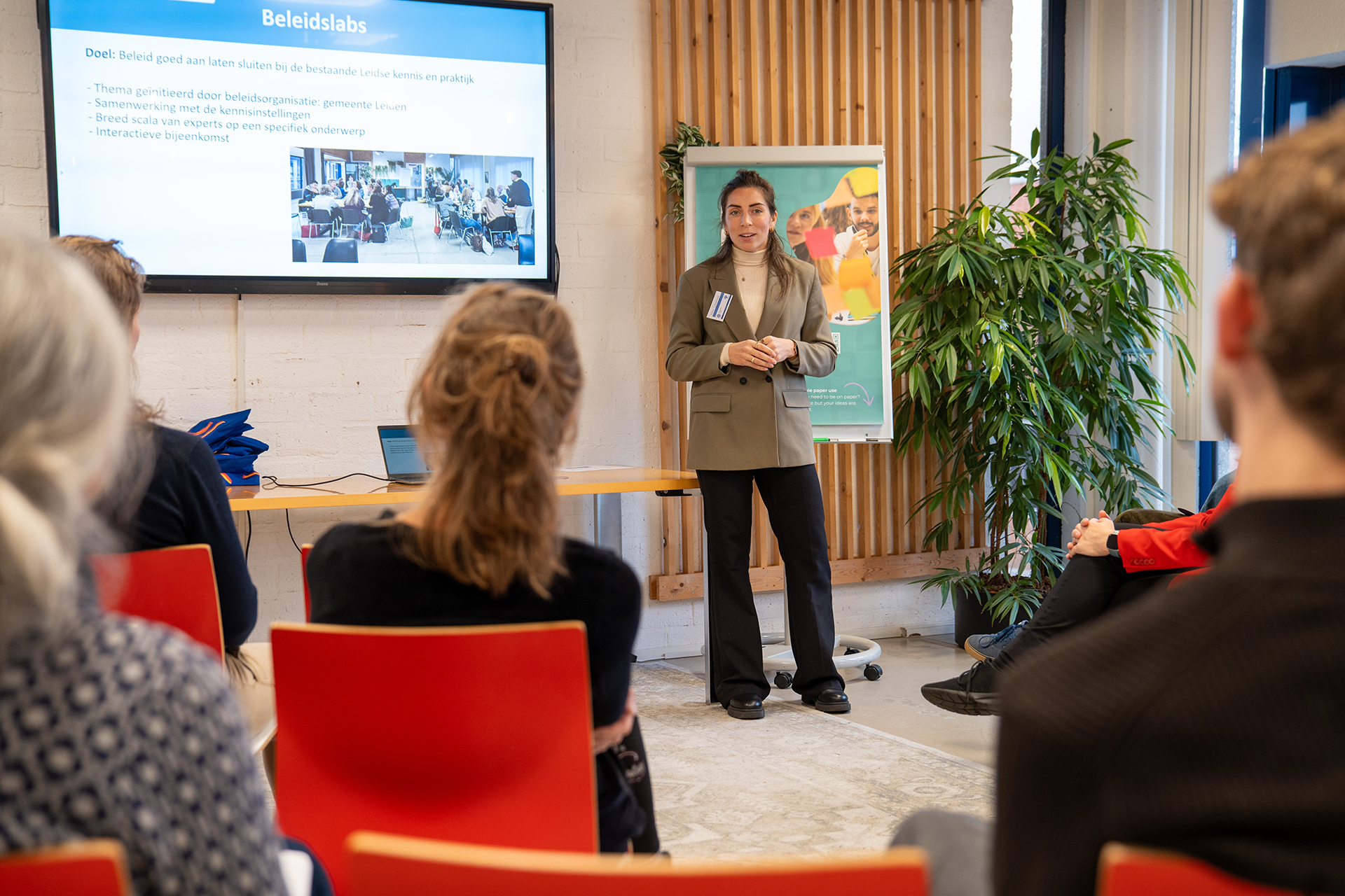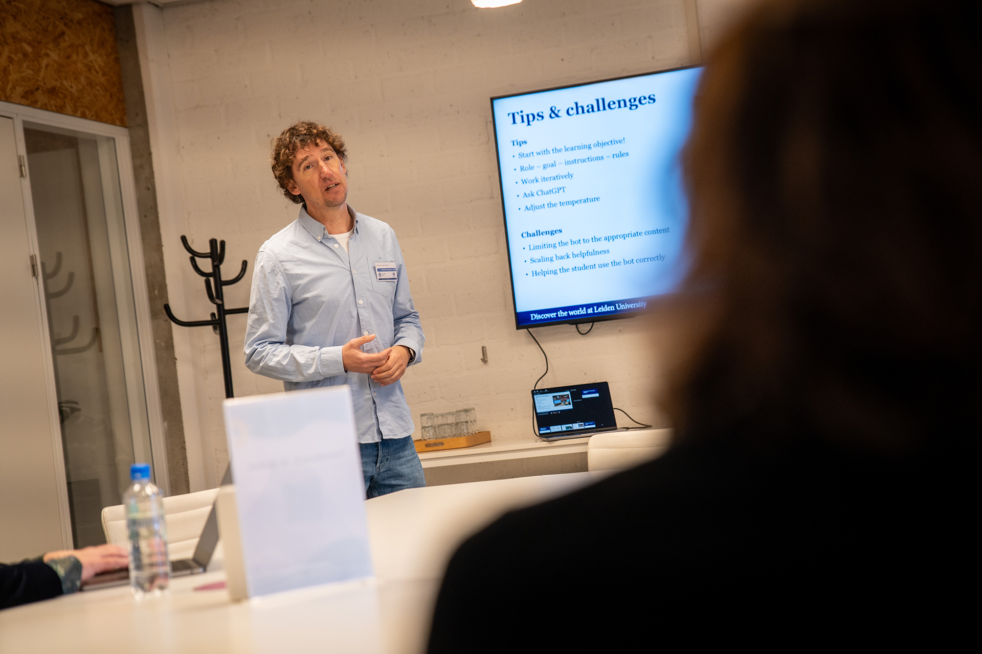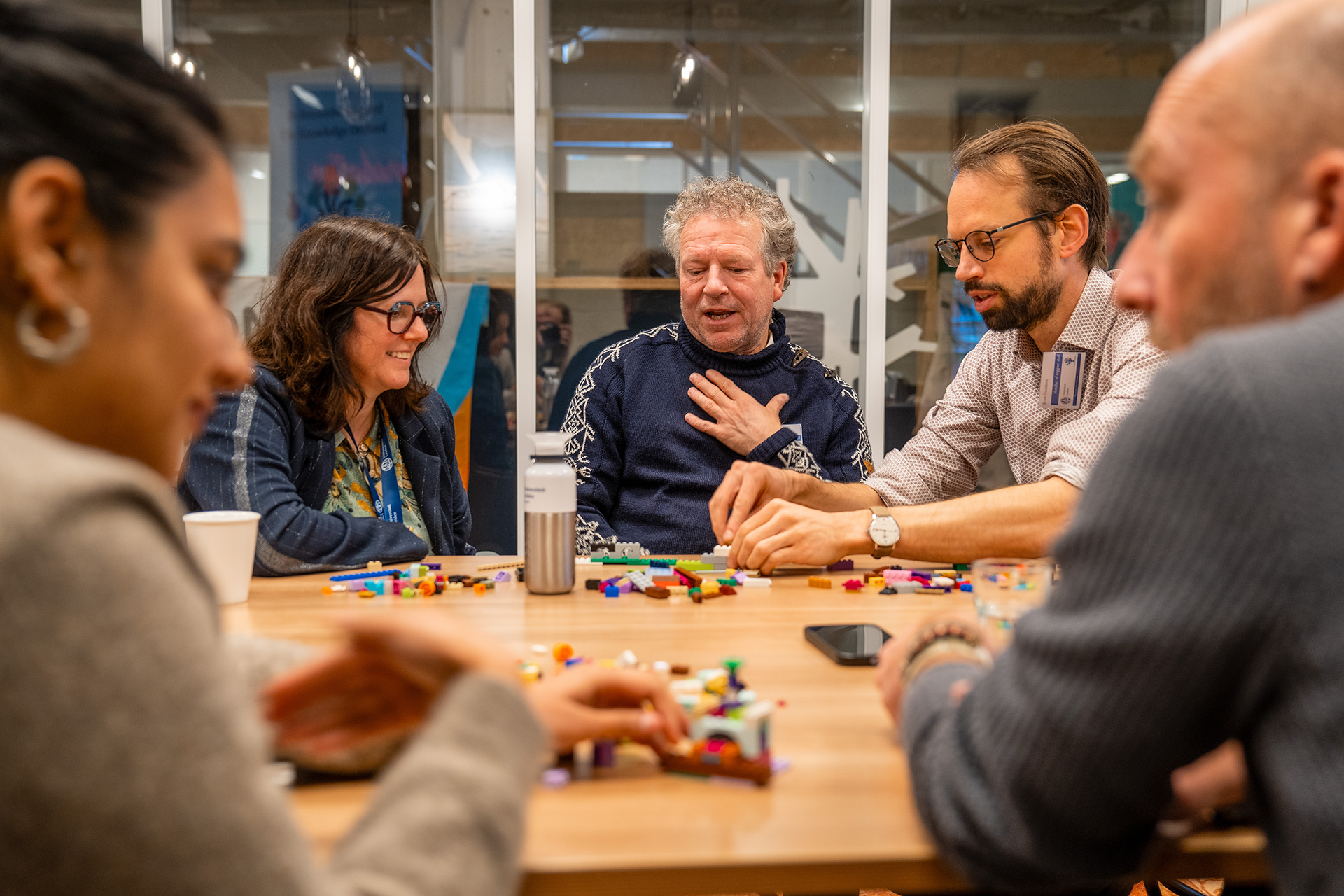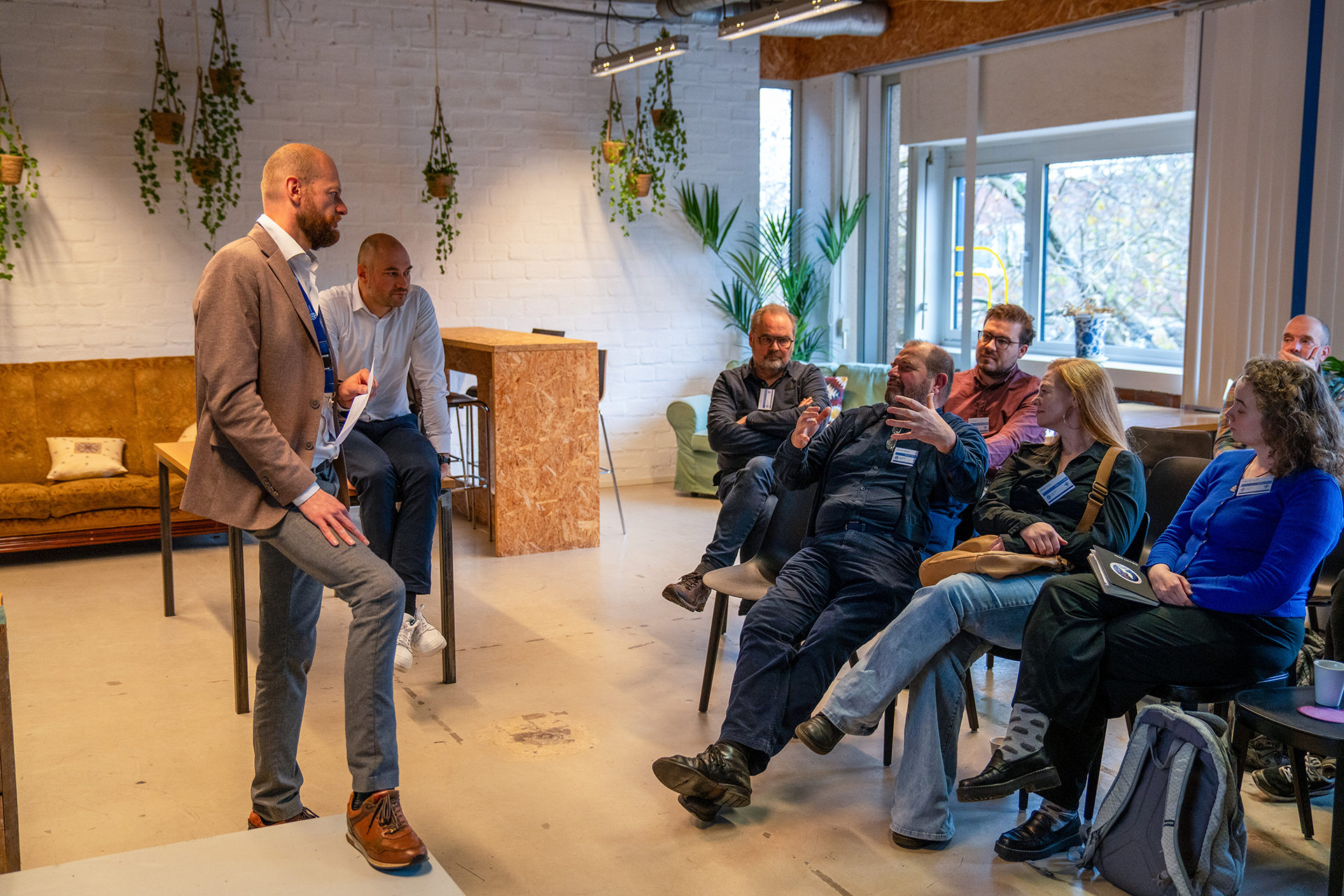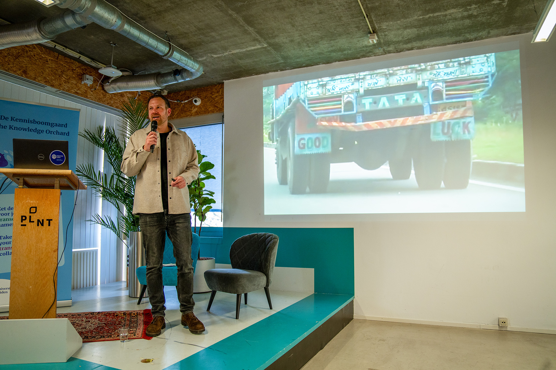 ‘Je weet niet wat een nieuwe samenwerking gaat brengen, maar je moet ervoor open staan’, zei avonturier en keynote spreker Wiebe Wakker tijdens het de opening van het middagprogramma. Hij reisde ruim tien jaar geleden zonder geld met een elektrische auto van Nederland naar Australië. Onderweg moest hij met veel samenwerken om verder te komen op zijn reis. Hij deelde zijn geleerde samenwerkingslessen met de zaal, die bestond uit Leidse onderzoekers en vertegenwoordigers van gemeenten, provincies en maatschappelijke partijen. Vervolgens verkenden deelnemers in sessies waar samenwerkingsmogelijkheden lagen. Dat deden ze onder meer aan de hand van drie thema’s: ‘Hoe verandert AI de rol van overheden ten aanzien van burgers’, ‘Gezondheid en leefomgeving’ en ‘Weerbare samenleving’.