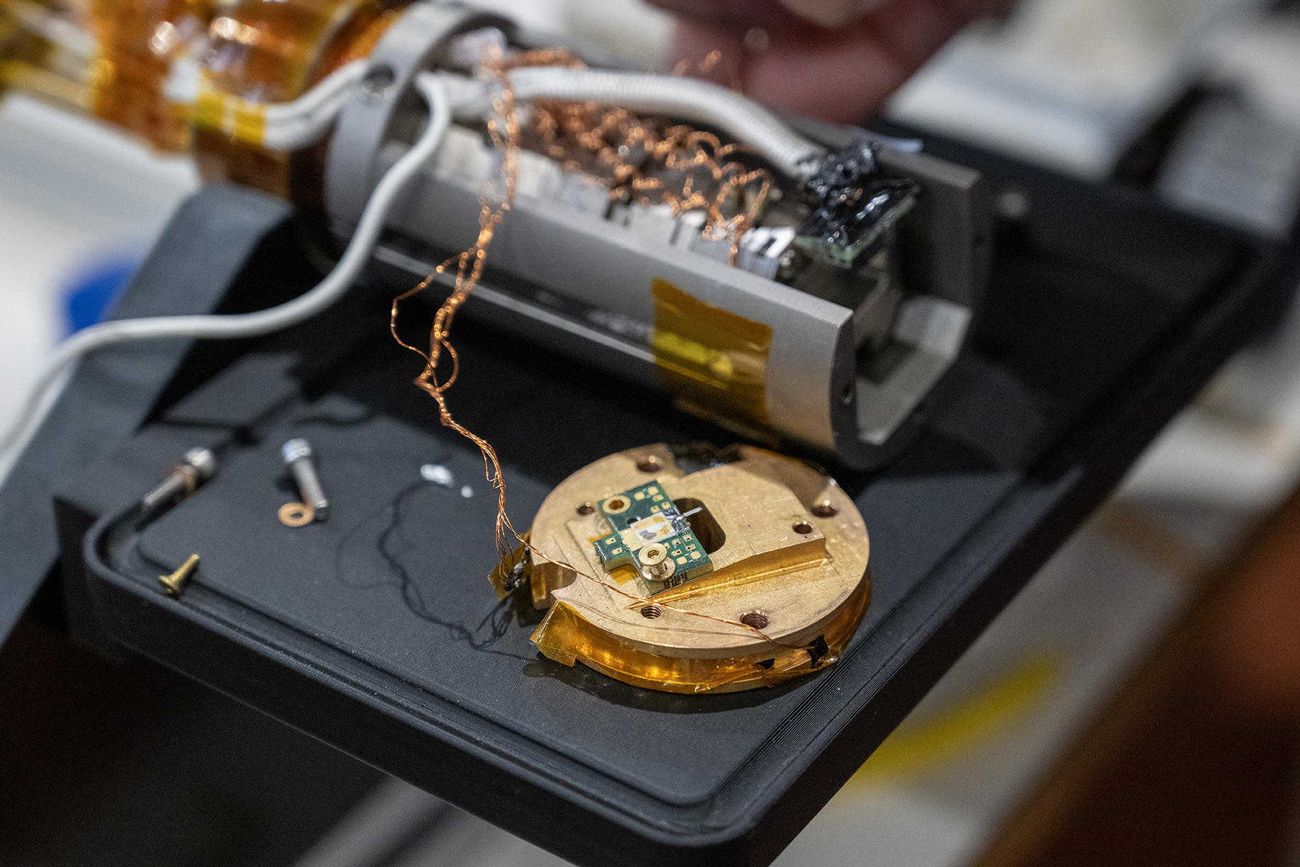 Rog: ‘De microscopen die tot nu toe bestaan, werken op heel platte preparaten. Dat beperkt je onderzoek omdat heel veel van de interessante dingen gebeuren aan de randjes van materialen, of op de overgang tussen twee verschillende quantummaterialen. Voor onze microscoop is dat geen enkel probleem, we bekijken net zo gemakkelijk een hobbelige chip als een plat kristal.’