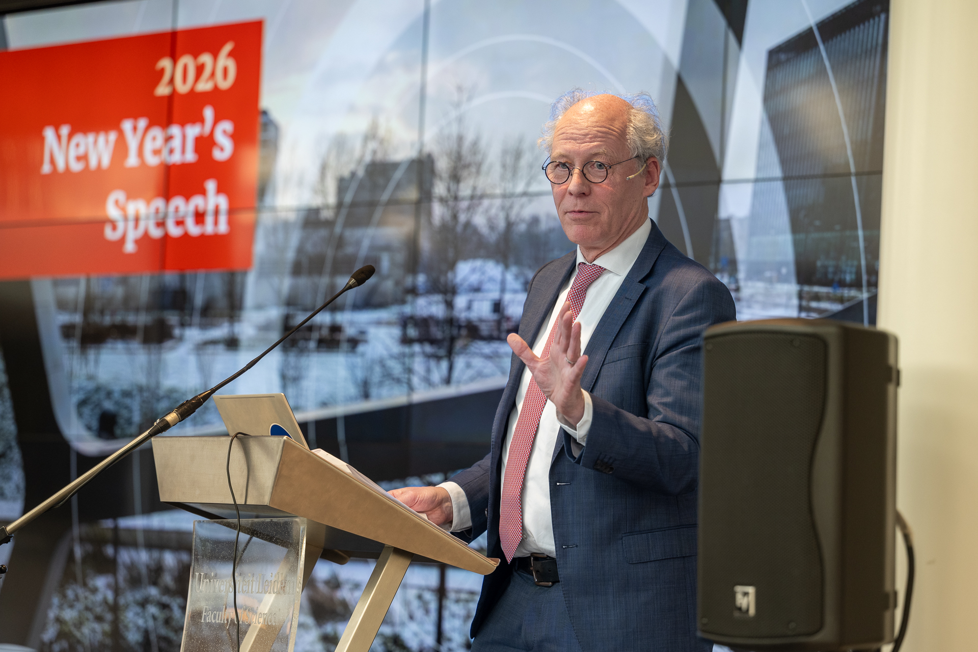 Decaan Jasper Knoester tijdens zijn nieuwjaarsspeech -