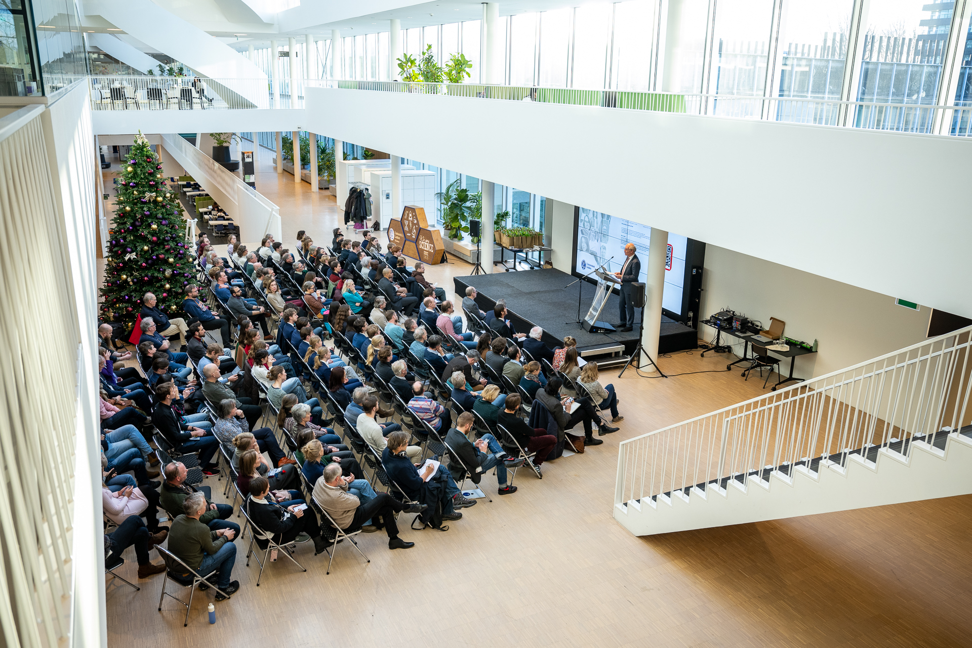 Met het strategisch plan in de hand zette hij de koers uit voor het komende jaar. Op de agenda staan onder andere Academia in Motion – de carrièrepaden voor wetenschappelijk en ondersteunend personeel, de hervorming van onze onderwijslogistiek en de onderzoeksthema’s. Daarbij maakte hij de themaleiders van de onderzoeksgebieden bekend.