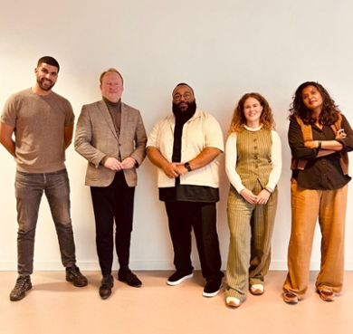 V.l.n.r. Lamyn Belgaroui (presentator), Hein van der Loo (Burgemeester van Almere), Redouan ait Ali (IPA jongerencoach), Elizabeth Vrieling (presentator) en Sheila Adjiembaks (onderzoeker).