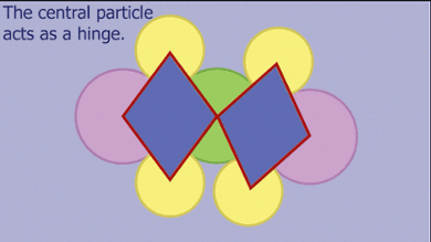 ‘Vierhoeksconstructies bleken de sleutel van ons ontwerp,’ legt Melio uit. ‘De deeltjes binnen de vierhoeken zetten we aan elkaar vast en zijn daardoor mechanisch stabiel. Door de vierhoeken daarna op één van de hoeken aan elkaar vast te maken, kunnen ze onderling roteren. Van enkele van deze vierhoeken werkten we toe naar complexere structuren, en bereikten we uiteindelijk zelfs het zogenaamde Kagomé-rooster (zie filmpje).