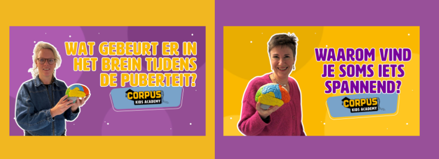 Janna Marie Bas-Hoogendam en Marieke Bos leggen in video’s voor Corpus Kids Academy uit hoe angst in het brein werkt en hoe het puberende brein zich ontwikkelt.