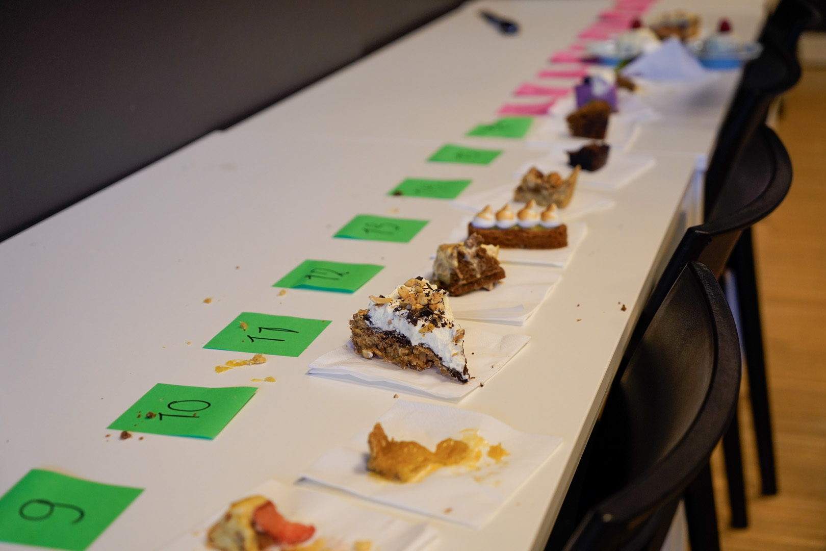 Het proeven begon symbolisch om 3 uur veertien. Aan de jury de schone taak om alle 25 taarten te proeven, maar de andere aanwezigen mochten ook wat taarten proeven en stemmen op hun favoriet. Binnen tien minuten waren de meeste taarten op.