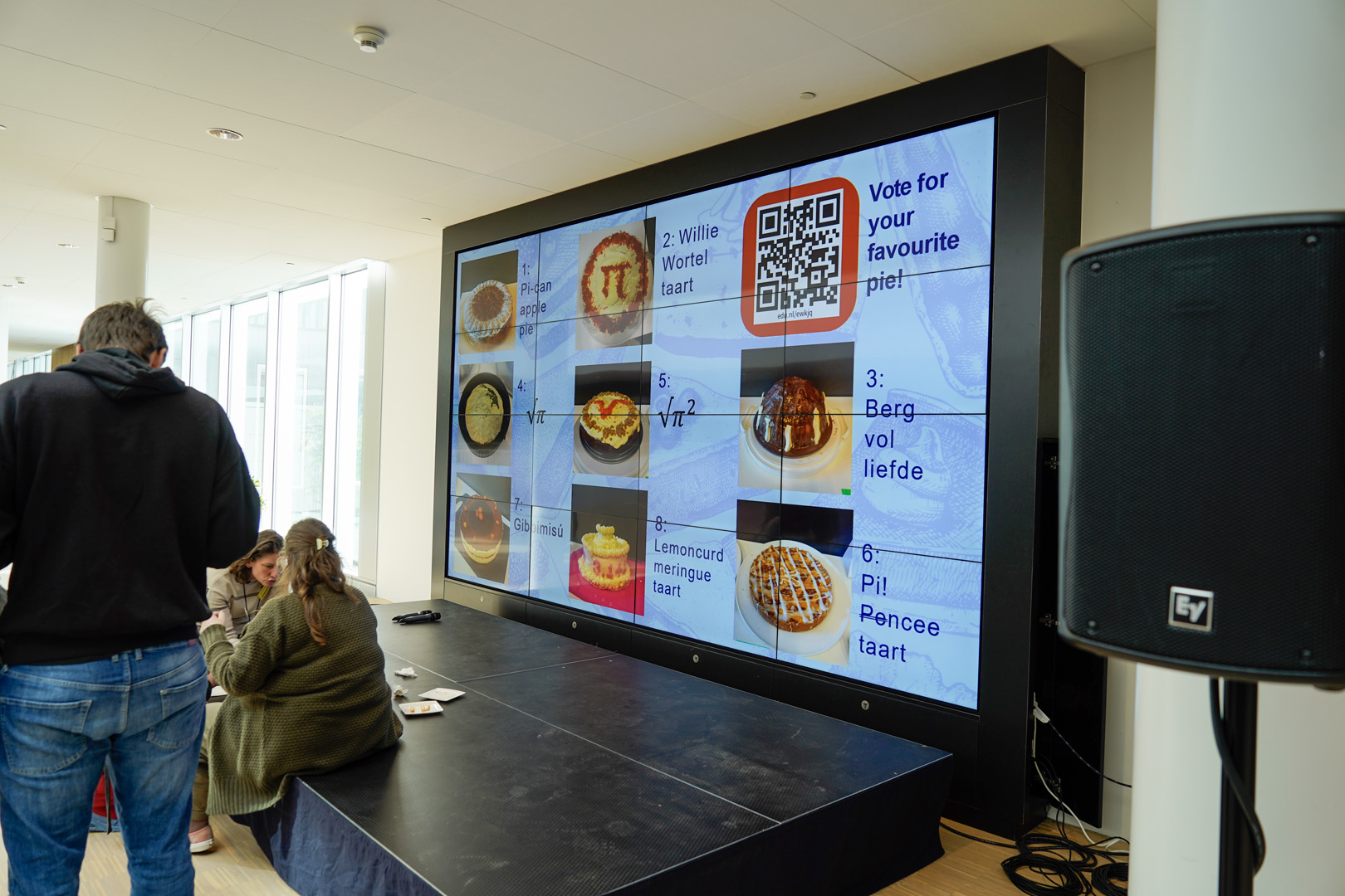 Een atrium vol taarten en proevers voor pi-dag