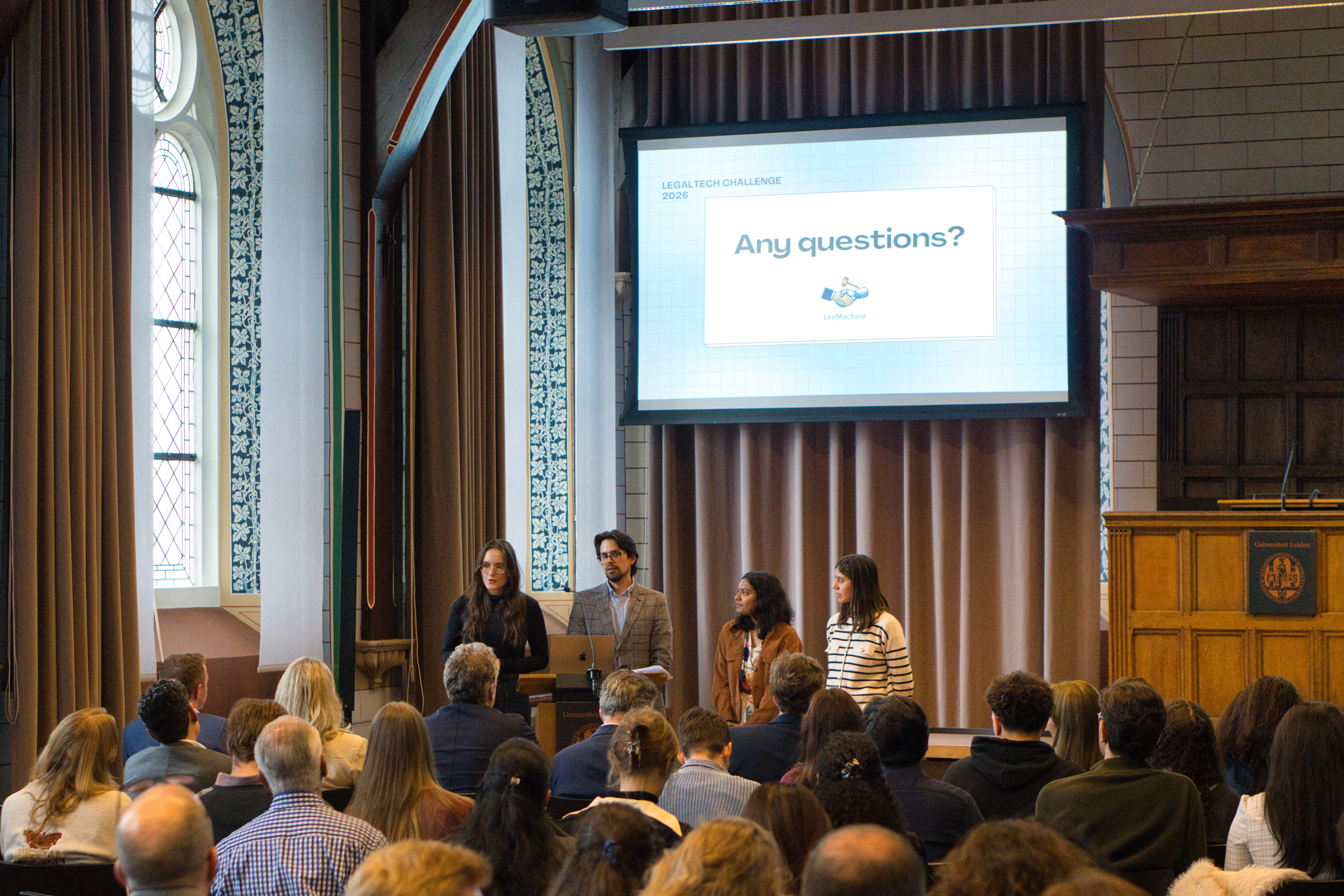 Op 2 april vond de finale van de Legal Tech Challenge 2026 plaats in het Academiegebouw van de Universiteit Leiden. Tijdens de finale gaven studenten in teams hun pitch voor een technologische oplossing voor een maatschappelijk probleem.