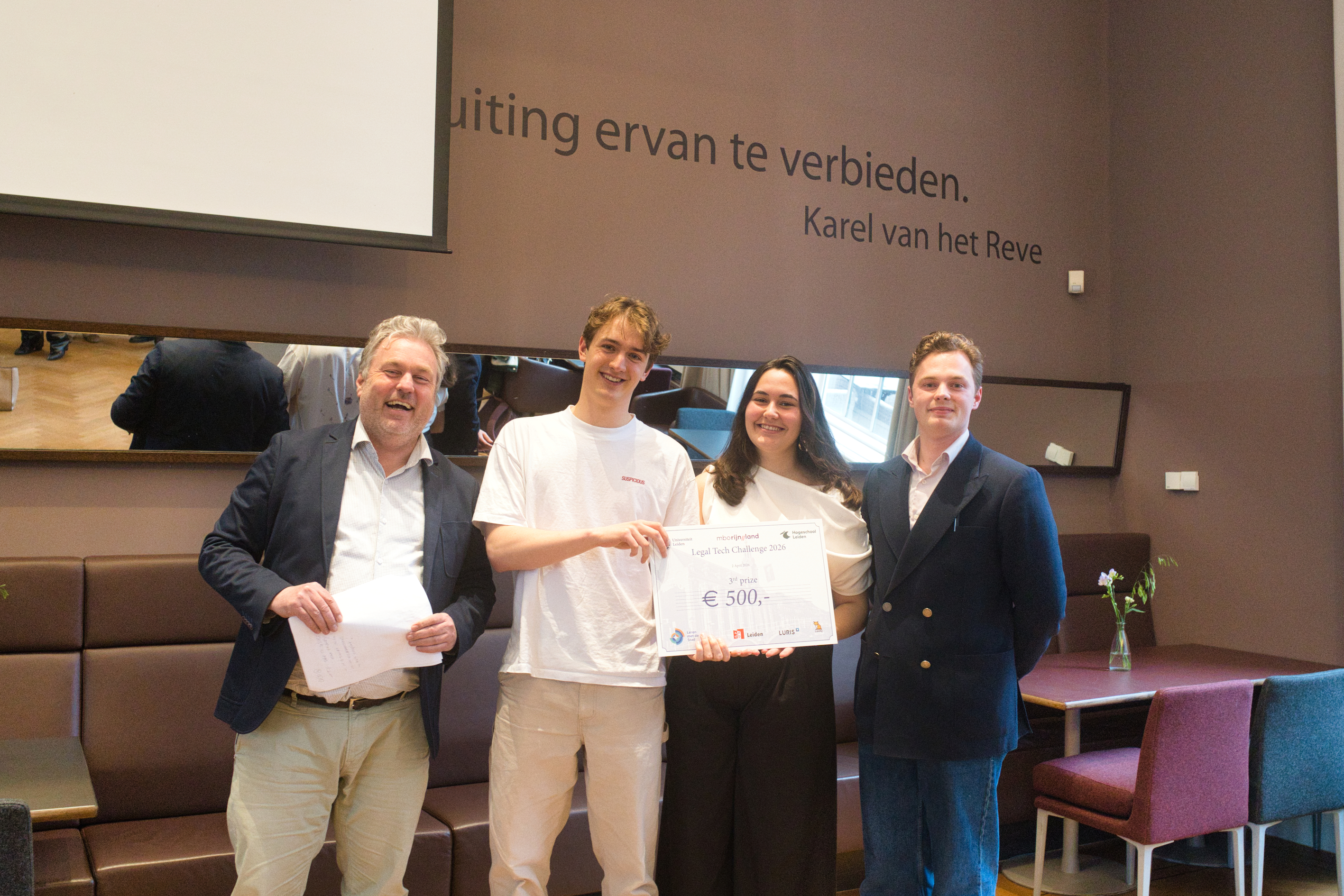Met de Legal Tech Challenge zet je jouw juridische en technische kennis in voor real-life impact. Wil jij volgend jaar ook meedoen en het verschil maken? Blijf op de hoogte door de studentenwebsite in de gaten te houden!