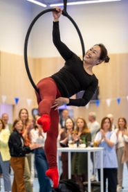 Met verschillende live‑acts werd zichtbaar hoe veelzijdig sport en beweging binnen het USC zijn. USC-dansdocent Kunika Wakamatsu verzorgde een indrukwekkende aerial acrobatics‑act. Ook brachten Matthijs Valten en Julia Pols van dansvereniging Leidance een energieke latin dance‑performance, en zorgden de cheerleaders van het USC voor extra dynamiek en sfeer.